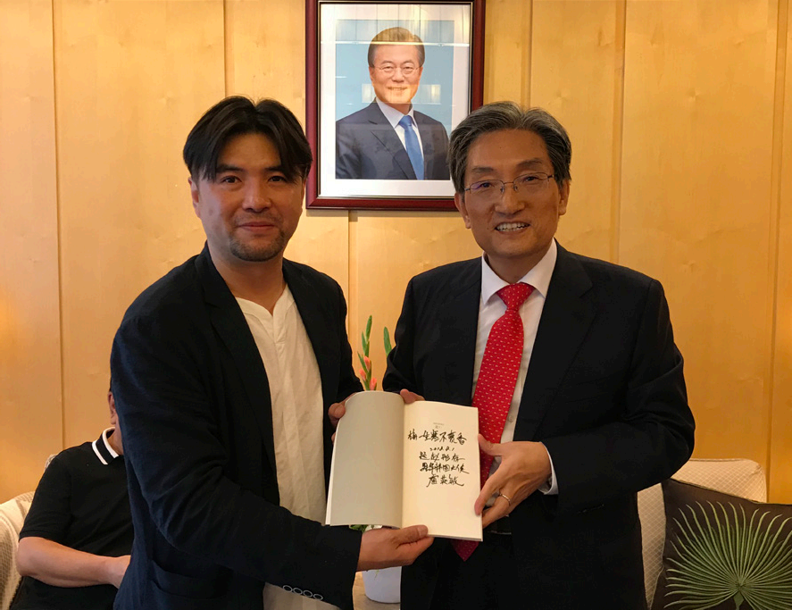 大韩民国驻华大使卢英敏向协会秘书长刘彤赠送他的诗集并题序